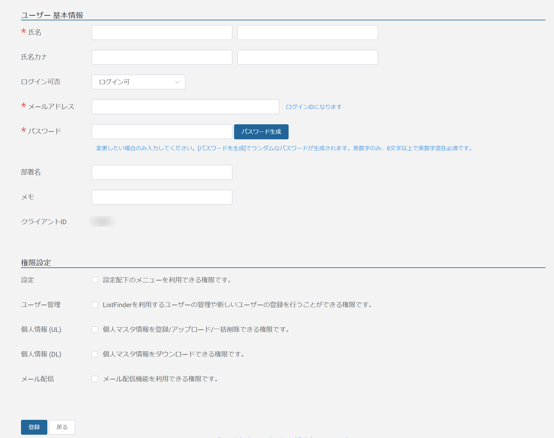 ユーザー管理の権限があるユーザーは、ユーザーの追加ができます。