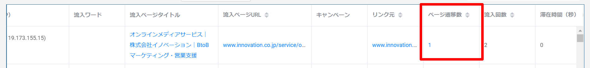 検索結果のページ遷移数の数字をクリックすると、コンバージョンがあったアクセスのページ遷移が画面にて確認できます。