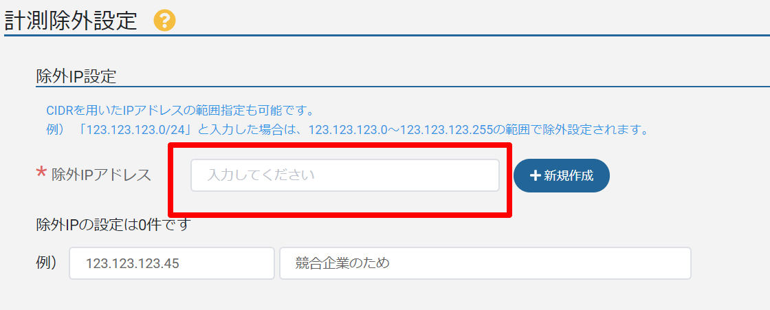 ③ [設定]>[計測除外設定]画面で[除外IPを追加]を押下し、除外したいIPアドレスを入力後[登録]
